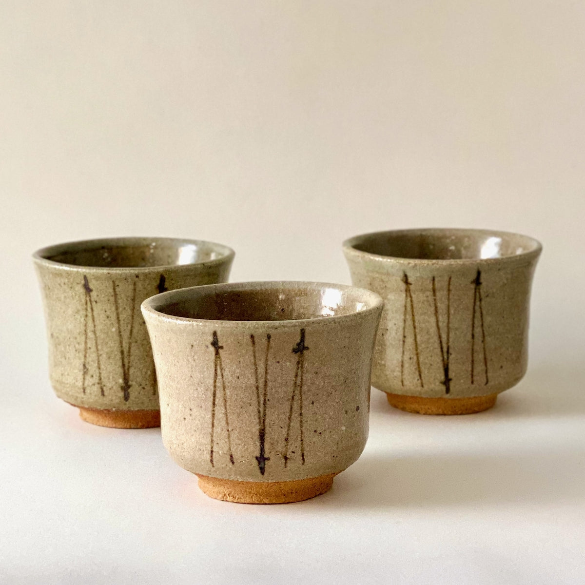 This is a soba-choko-shaped teacup decorated with pine needles.
