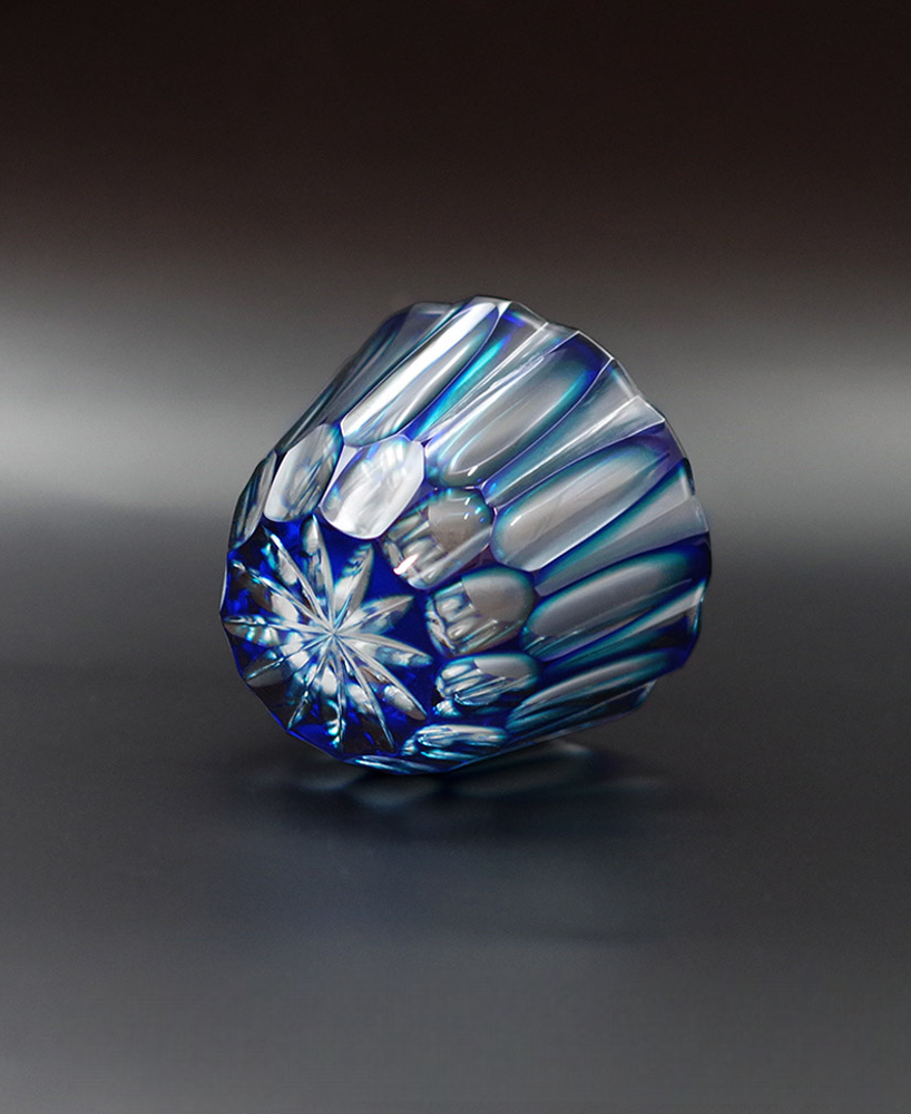 *Tenma Kiriko two-colored glass: This glass has a two-colored layer on the outside of the clear glass, and is carved with kamaboko (U-shaped) carving to create a vivid gradation.