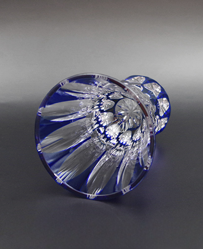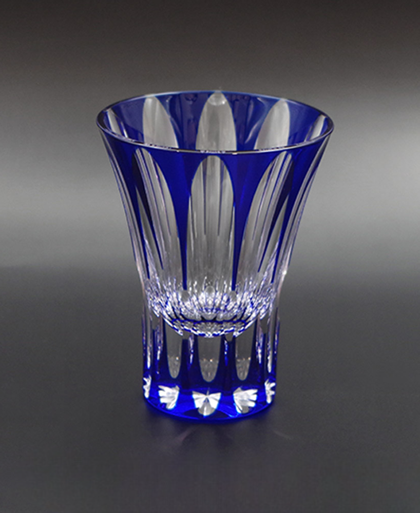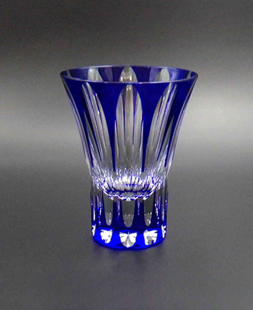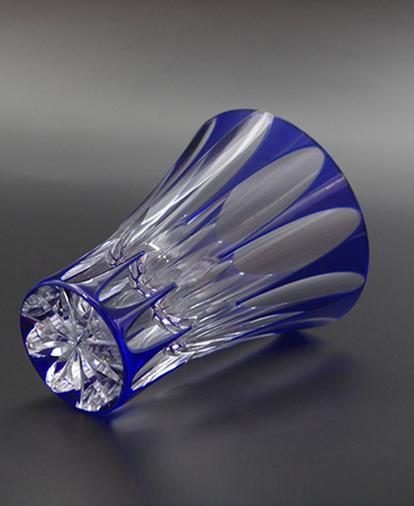The popular open-top shape of Tenma Kiriko glasses is carved with a U-shaped kamaboko carving to create the image of a morning glory flower in bloom. This glass is popular as a sake cup because of the unique reflection it creates when sake is poured into it.